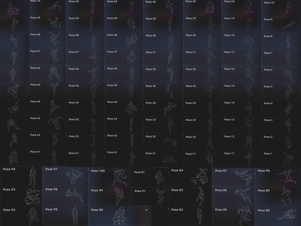100 Male Pose stamps for procreate